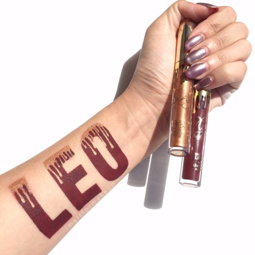On Instagram I read many people were not able to order the Kylie limited birthday edition Leo liquid lipstick, because it sold out already or simply was on stuck on a “frozen” page. I couldn’t “letitgooo” so I tried the second restock and got regular sized Leo instead of the mini matte set that sold out in a split second (60 seconds, I lied). After I was able to acquire Leo in my haa-ands, I went and ordered some colourpop colors I felt looked similar  for $6 each–and as rumor or fact has it that Kylie and Colourpop are made from the same manufacturer. Some colors I will discuss are almost an exact dupe. So I tried about 10 colors from my collection that look like similar to Leo, but some when swatched were either too purple or too red so I left those out for the dupe comparisons. Below are the best dupes I could personally find.