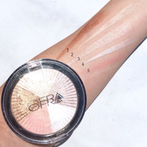 This highlighter has been popping up all over Instagram and snapchat for the past few weeks. I first saw swatches on Ofra’s snapchat (ofracosmetics). They swatched so beautifully bright and pigmented. Then I saw it on Nikkie tutorial’s snapchat and then some other instagrammer’s video posts on the explore page. I buy too much makeup especially liquid lipsticks and when it comes to makeup for my kit ( always looking for the latest and the greatest cosmetics and tools) so I tried to forgetta about it.. Then one lovely morning I got a notification of Ofra hosting a Persicope giveaway to win the Beverly Hills Highlighter..so I thought I’d give it a try, thinking I had a good chance because they were giving away 3. I typed too slow, and there were hyper huge fans of Ofra who type as fast as the speed of light and knew all the questions. So being the “poor” loser (pun intended) and makeup junkie I am, I went right to their website after their scope and bought the little b. hills highlighter.